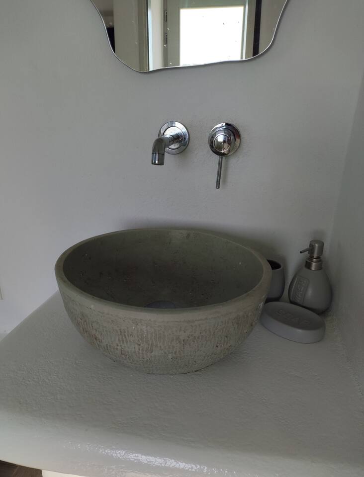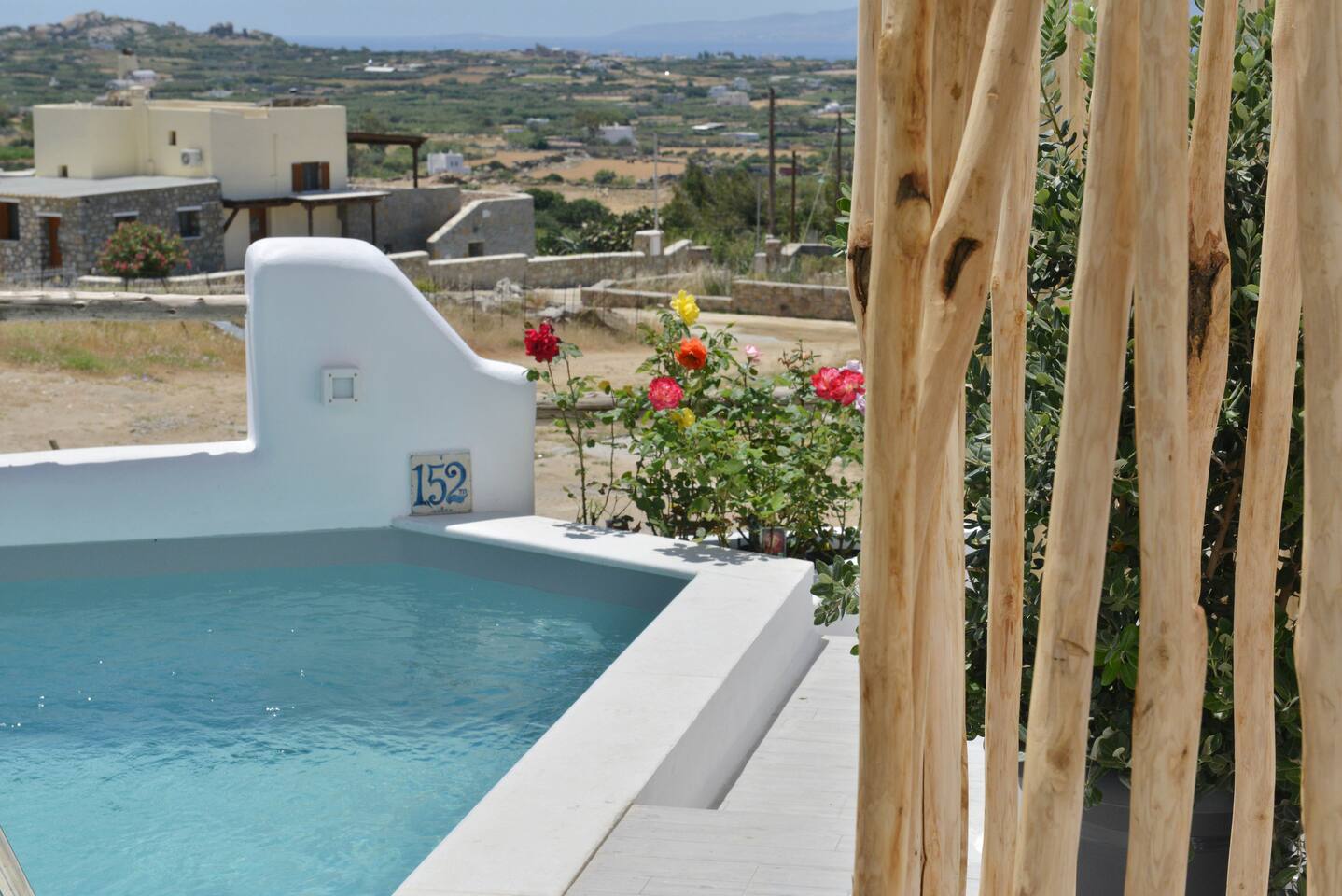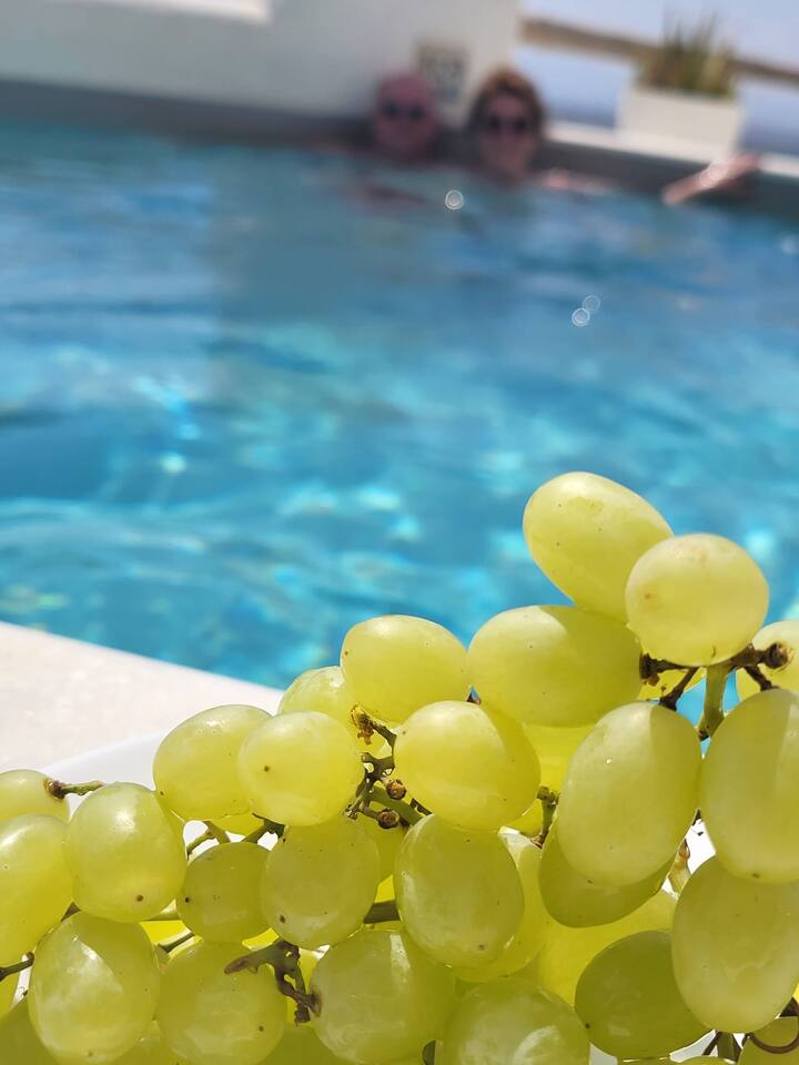 The tap water on the island is not drinkable. Drinking water is available from a public tap located outside the property, on the main road. The villa is equipped with a 160-liter solar water heater, which can also be heated using electric power when needed. The swimming pool operates during specific hours, and children must use the pool under parental supervision at all times.