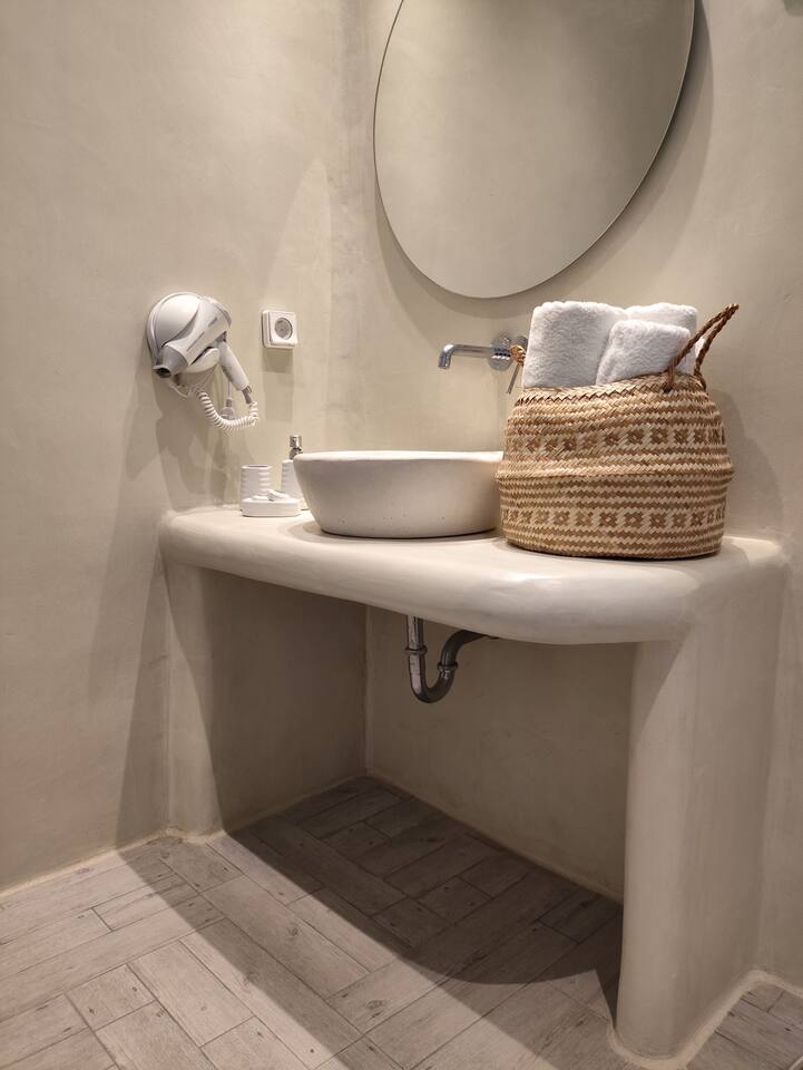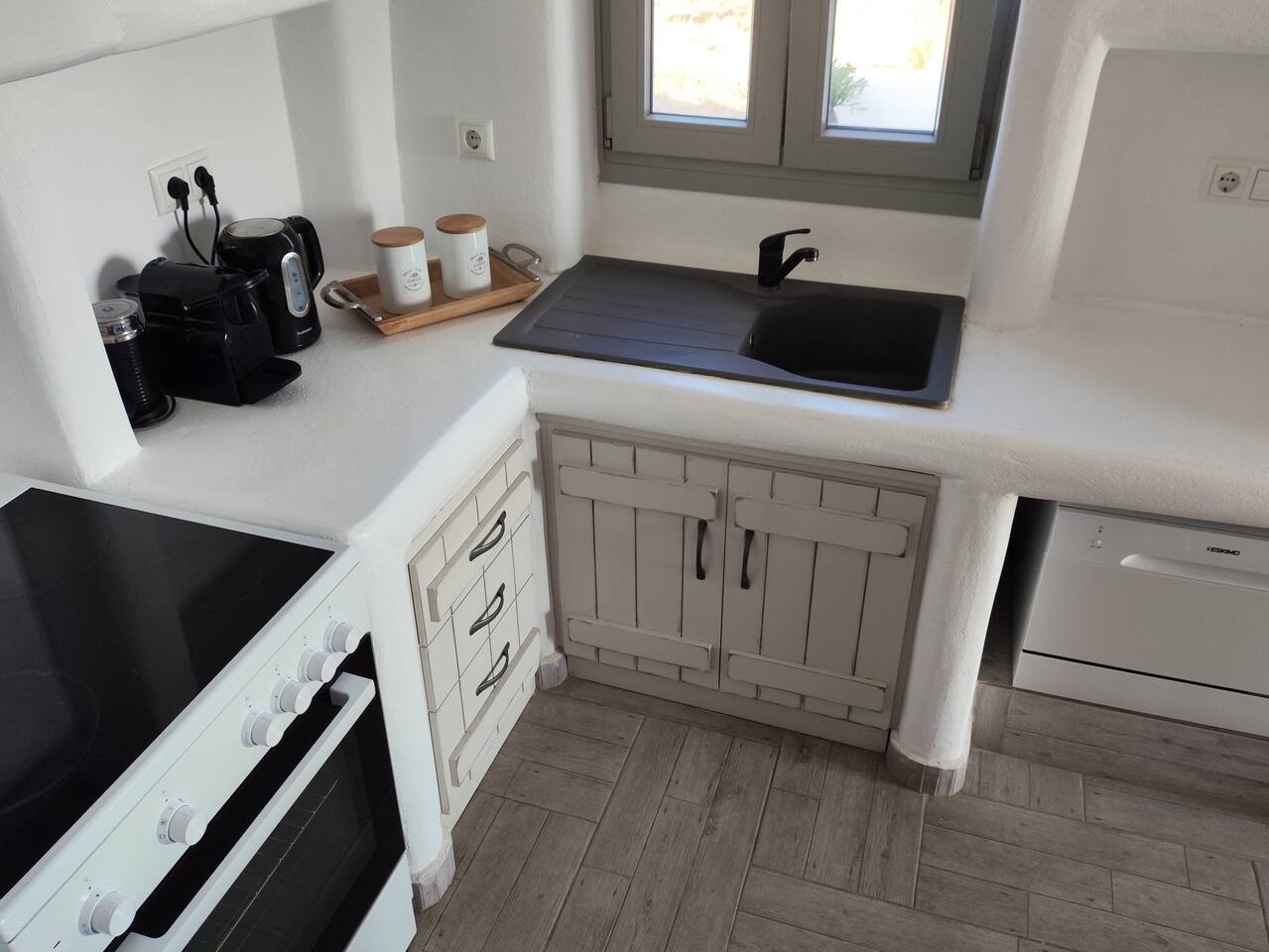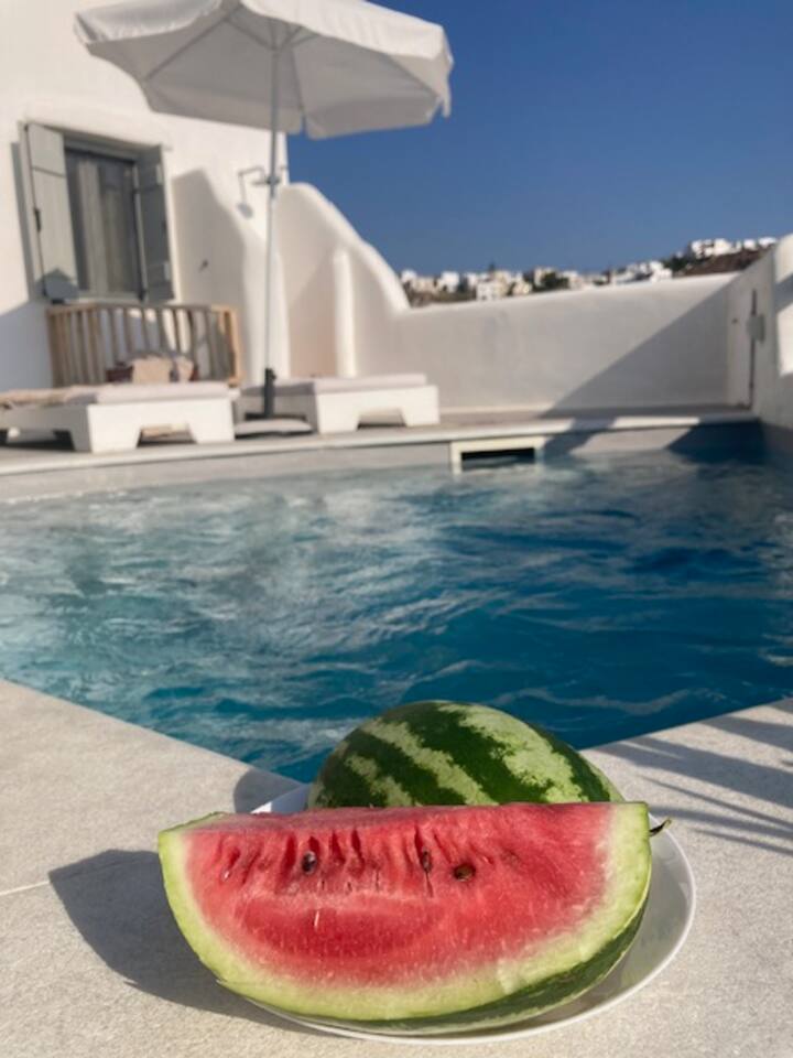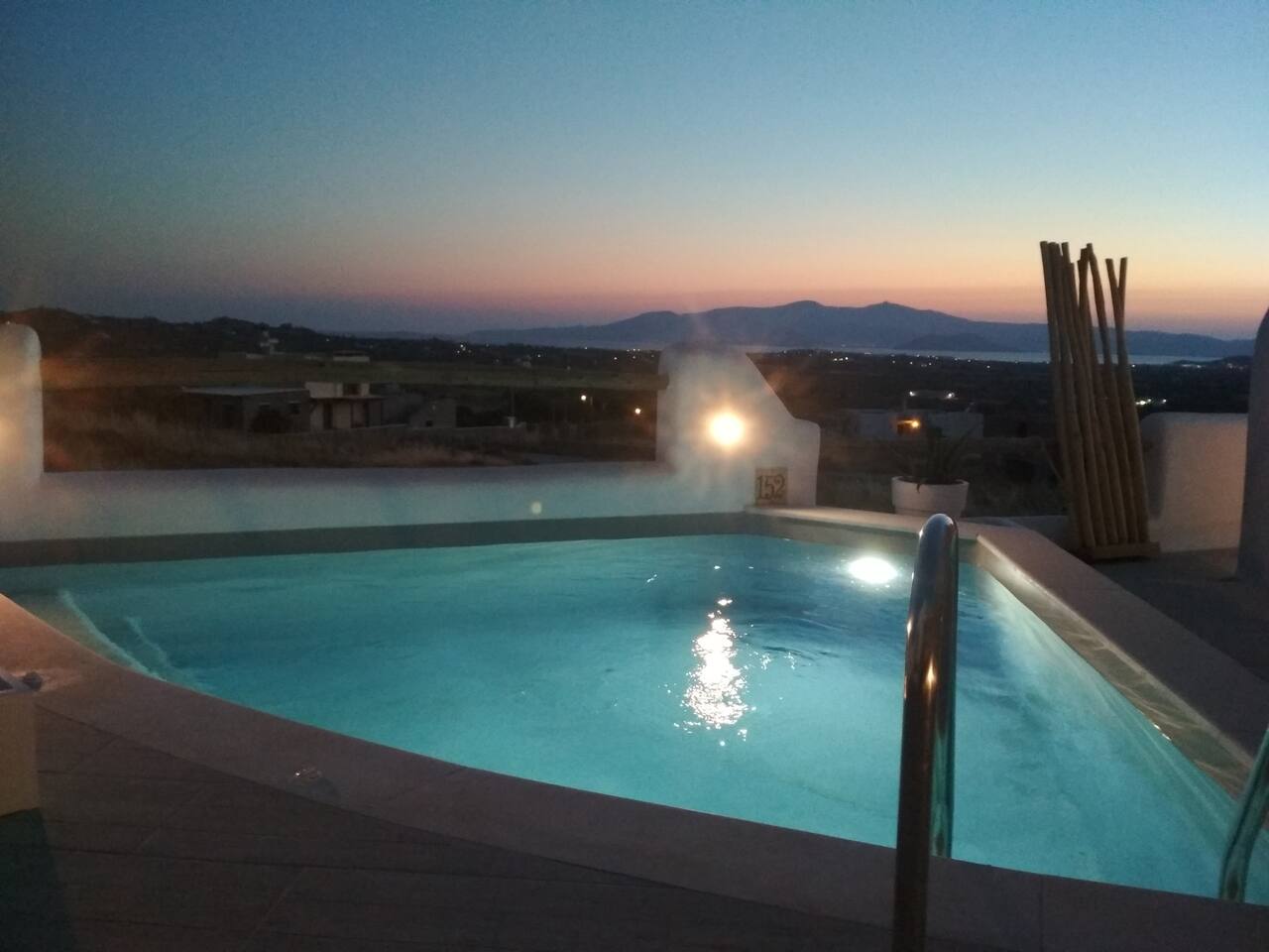 The tap water on the island is not drinkable. Drinking water is available from a public tap located outside the property, on the main road. The villa is equipped with a 160-liter solar water heater, which can also be heated using electric power when needed. The swimming pool operates during specific hours, and children must use the pool under parental supervision at all times.