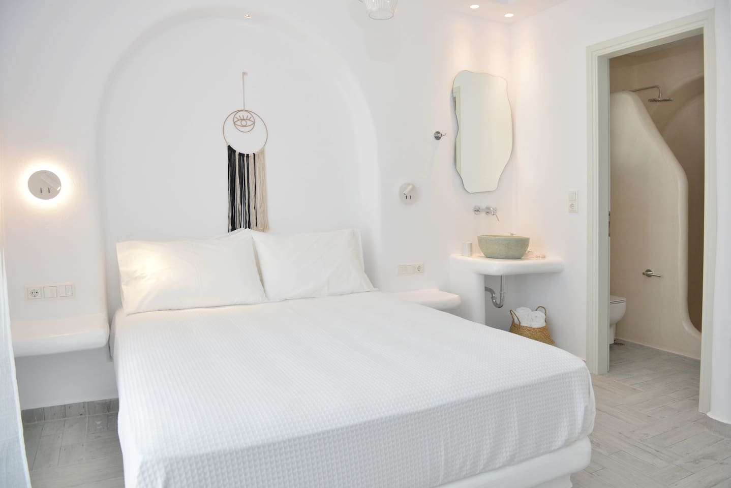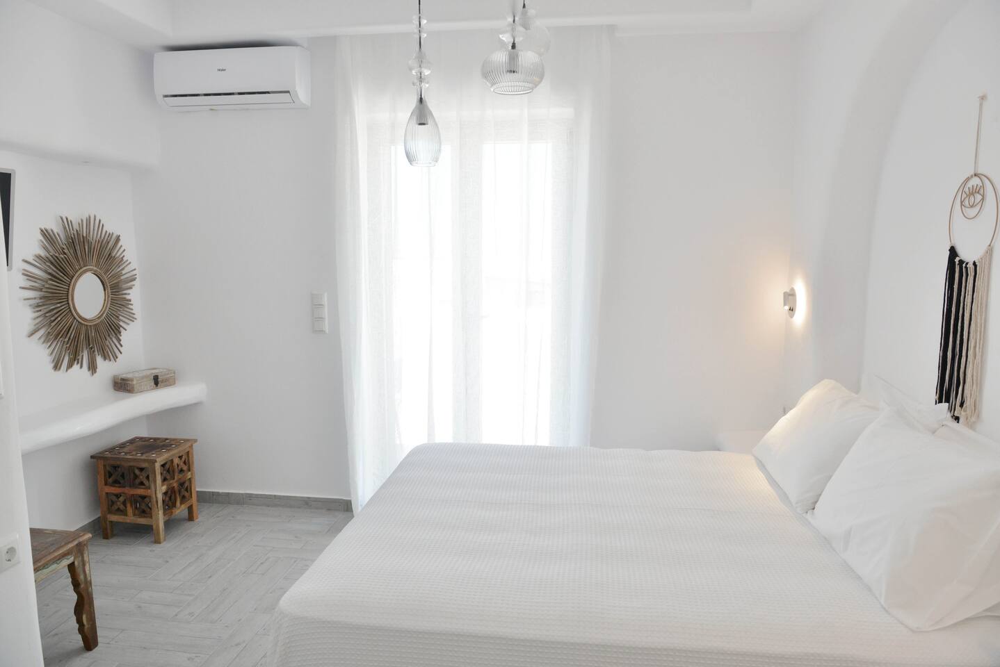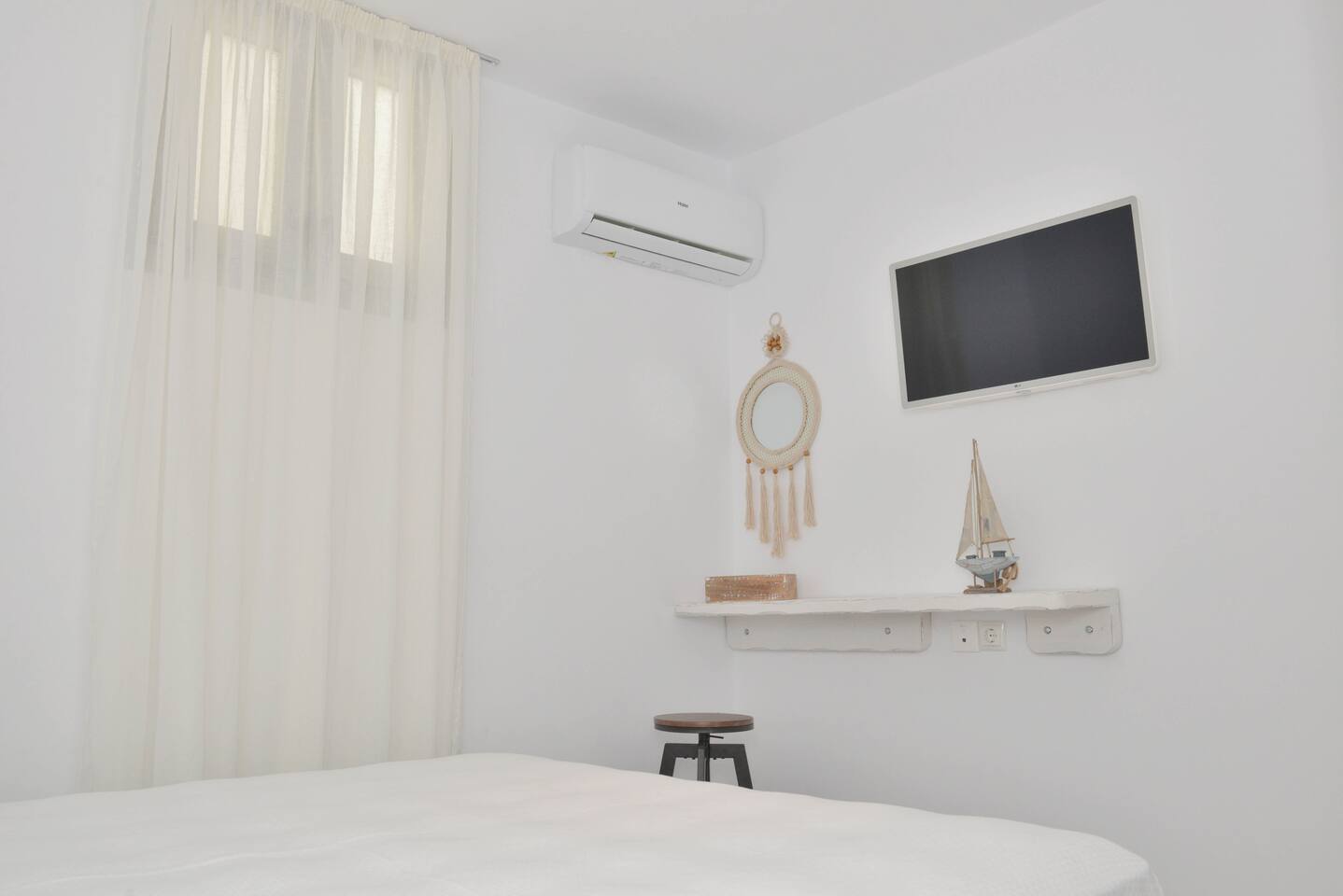 It consists of three bedrooms, thoughtfully arranged with one on each floor. The first-floor bedroom offers a beautiful view of the city and the sea, creating a peaceful and relaxing atmosphere. On the ground floor, there is a bedroom with a king-size bed, along with an open-plan living room and kitchen, ideal for spending time together. The semi-basement level features another bedroom with a king-size bed, and on this floor the property also provides a washing machine for guests’ convenience.